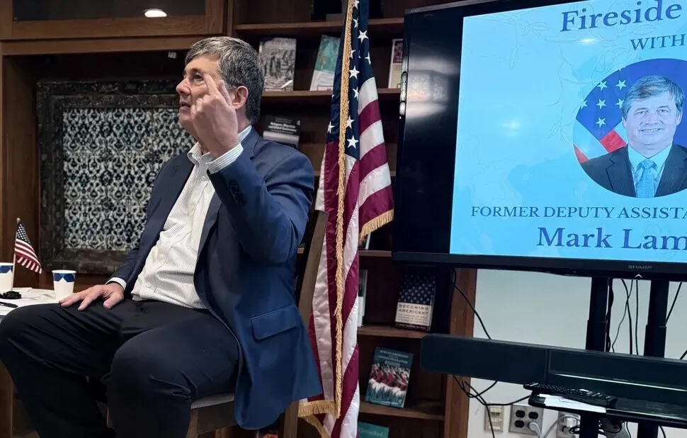 Mark Lambert, a former US deputy assistant secretary of state who spearheaded working-level negotiations as a State Division particular envoy for North Korea throughout Donald Trump’s first time period as US president, offers a fireplace chat for the SFS Korea Coverage Membership at Georgetown College in Washington, DC, on Nov. 18, 2025. (Kim Received-chul/Hankyoreh)