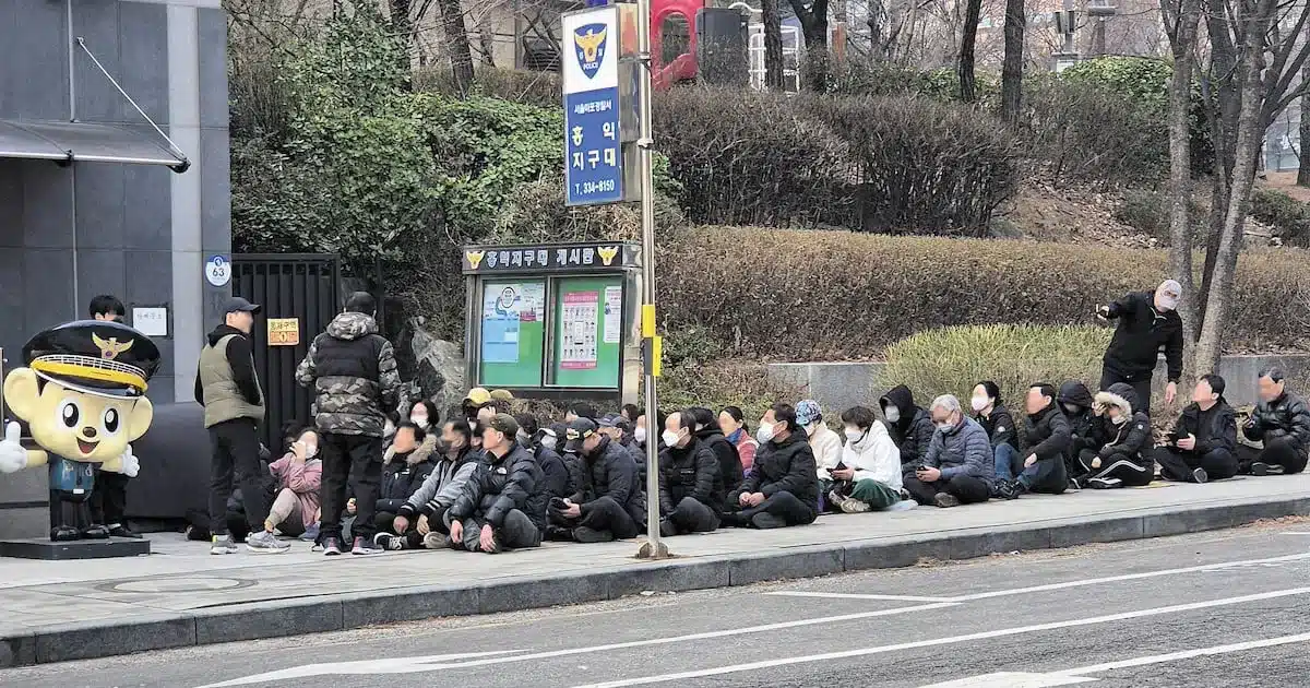 On March 17, approximately 40 illegal street vendors assembled at the main entrance of Hongdae Police Station in Seoul’s Mapo-gu district around 10:30 a.m. The group, linked to a western district vendors’ association, staged a sit-in for about 40 minutes, demanding an audience with the station chief.