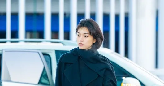 Before boarding, she struck a poised pose while waiting at a pedestrian signal, exuding confidence despite the biting cold.