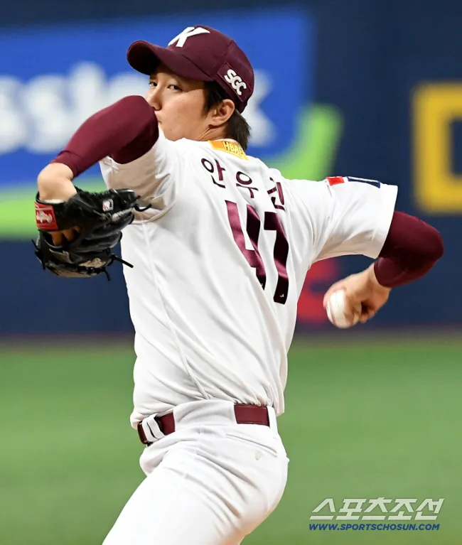 An Woo-jin takes the mound on March 9 at Goyang National Stadium in a Futures League game against the Hanwha Eagles, projected for one inning. Kiwoom coach noted, “We expect a maximum of 30 pitches in one inning. If the pitch count exceeds 30, we’ll make a coaching decision.”