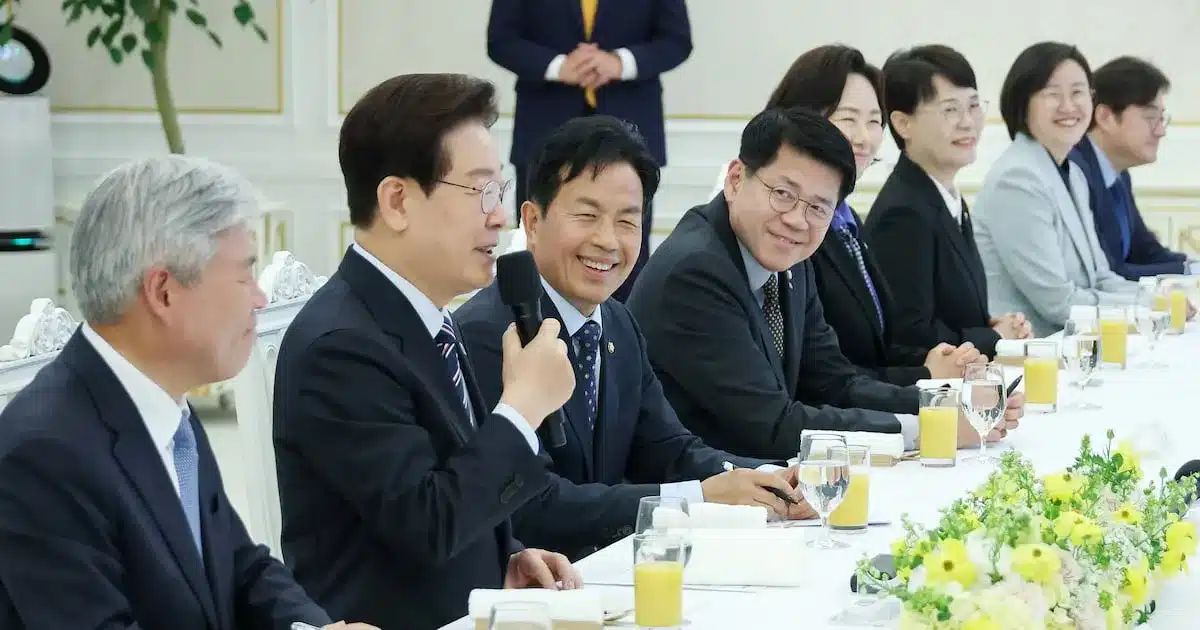 Democratic Party leader Lee Jae-myung urged political figures to prioritize citizen livelihoods over foreign reactions during a bipartisan discussion at the former presidential residence on April 29. He engaged with chairs from five bipartisan task forces and representatives from minor parties, including Jogukhyeoksin, Jinbodang, Gaehyeoksin, Gibon Sodukdang, and Sahoe Minjudang.
