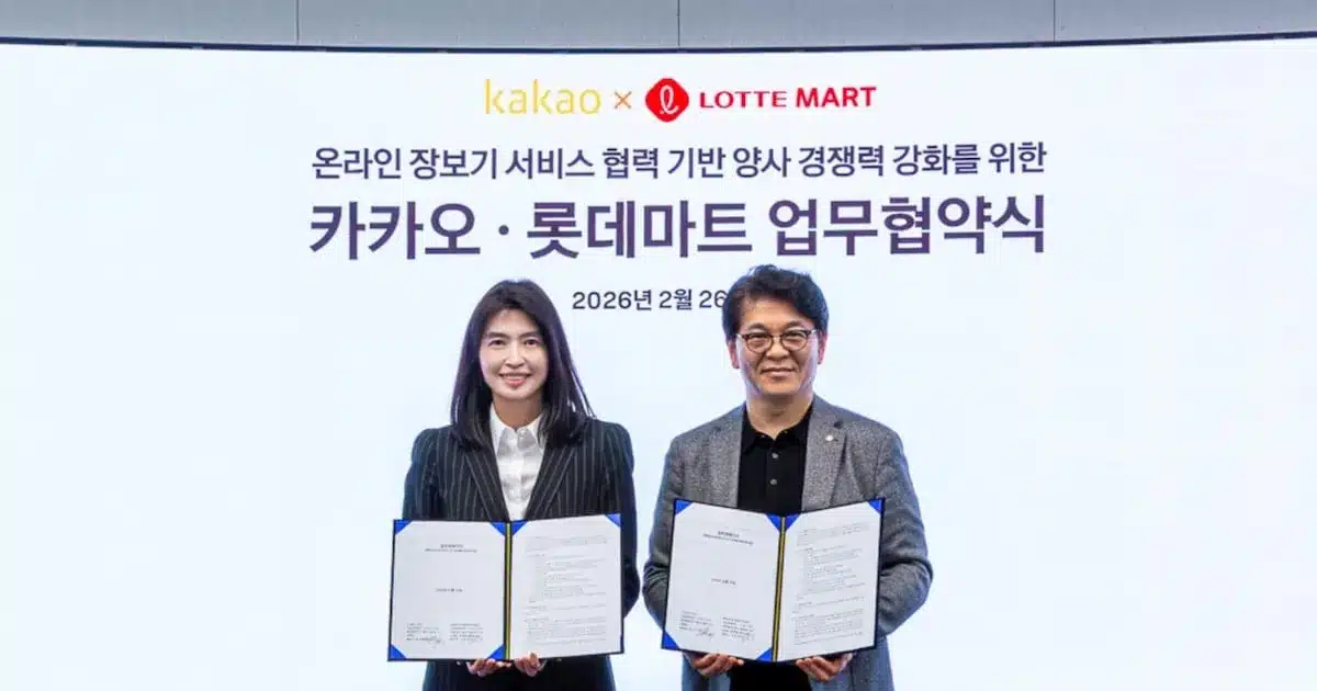 Lotte Mart and Kakao finalized a comprehensive business cooperation memorandum (MOU) on January 26 at Kakao’s Pangyo headquarters to bolster online direct sales channels. The agreement focuses on integrating Lotte Mart’s services into Kakao’s ecosystem for enhanced user accessibility.