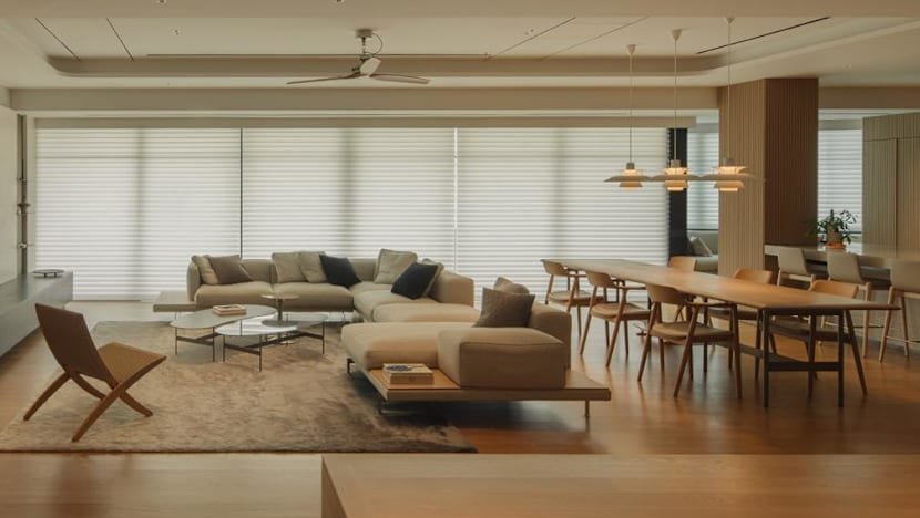 At first glance, this 2,700-square-foot penthouse in River Valley embodies Japanese design principles through its traditional doma entryway, tatami mat platform, and clean, minimalist lines. However, the home goes beyond aesthetics to integrate authentic Japanese living rituals, creating distinct zones for sleep, play, and daily routines tailored to a family of five.